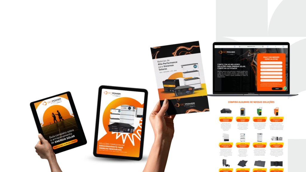 Nossa atuação em performance para a Getpower foi estruturada em múltiplas frentes, com foco na captação de leads qualificados e no fortalecimento da presença digital da marca. Desenvolvemos campanhas segmentadas tanto para a linha solar quanto para a linha Powersafe, atendendo públicos distintos com necessidades específicas.